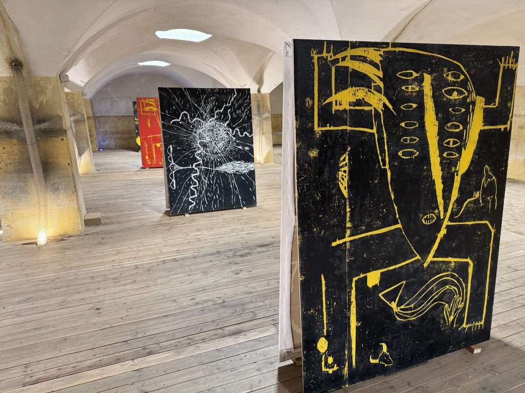 Die zum Teil zwei Meter hohen Holzschnittleinwände des Basler Künstlers Karl A. Meyer sind über 40 Jahre alt. Nun stellt er seine Werke zum ersten Mal in Basel aus. Und zwar im Filter 4 auf dem Bruderholz.