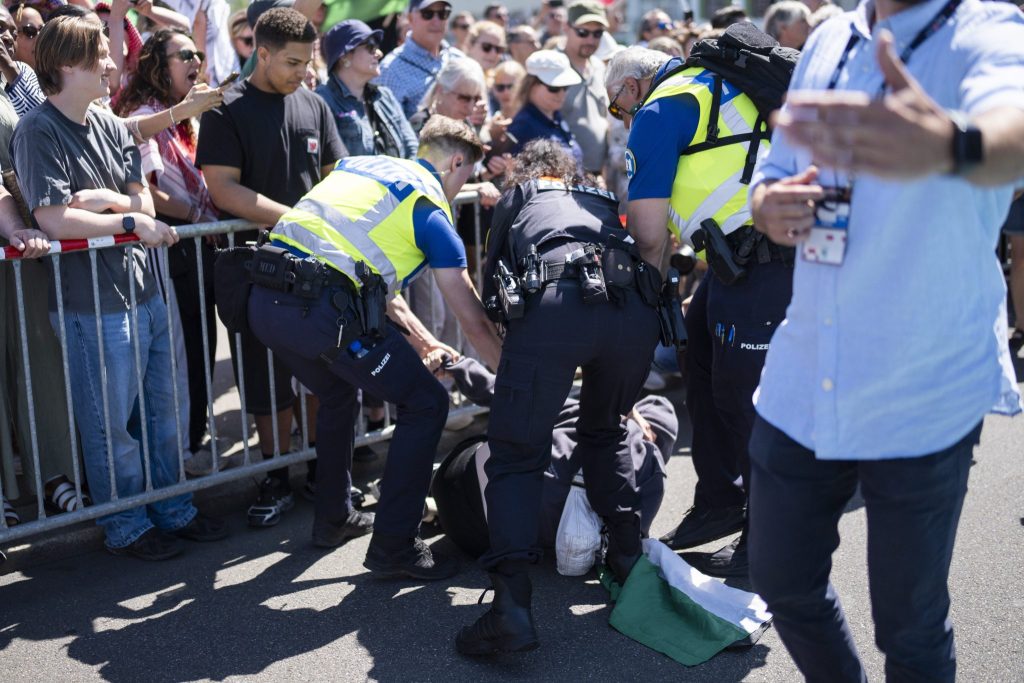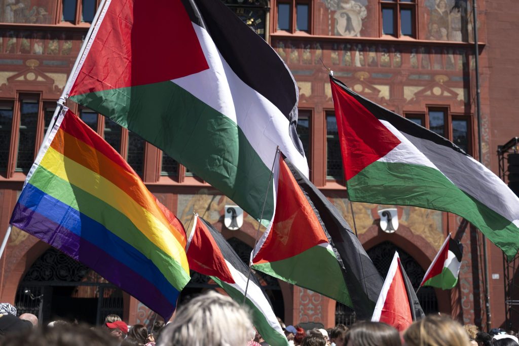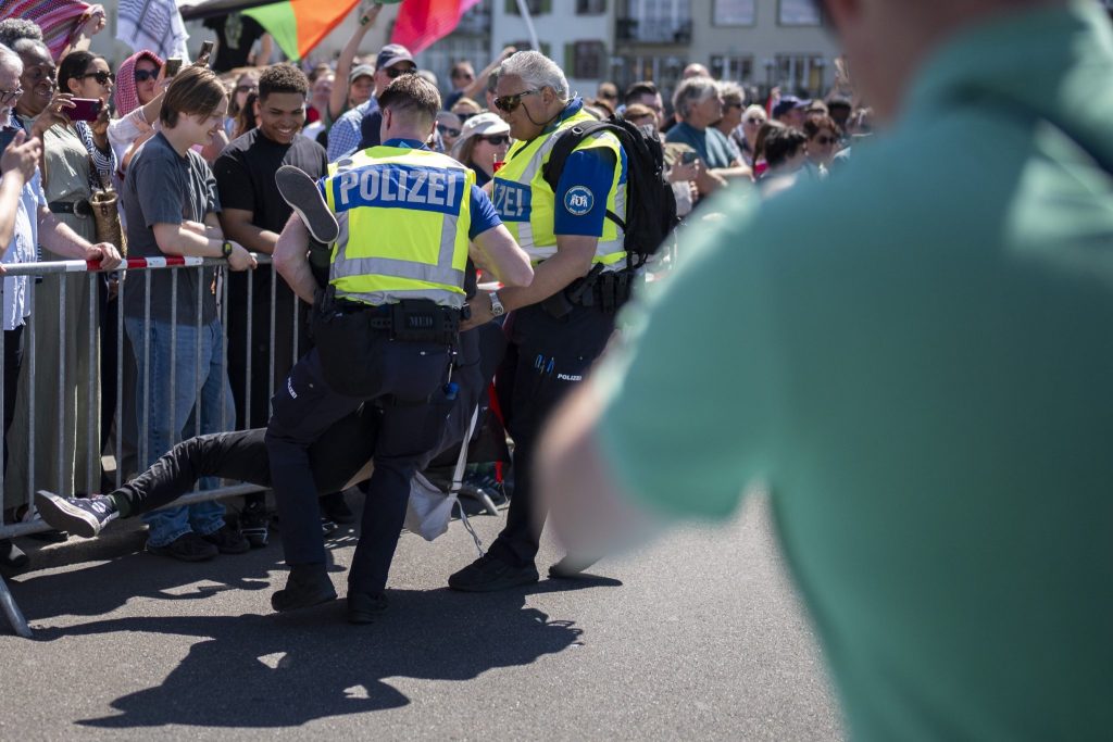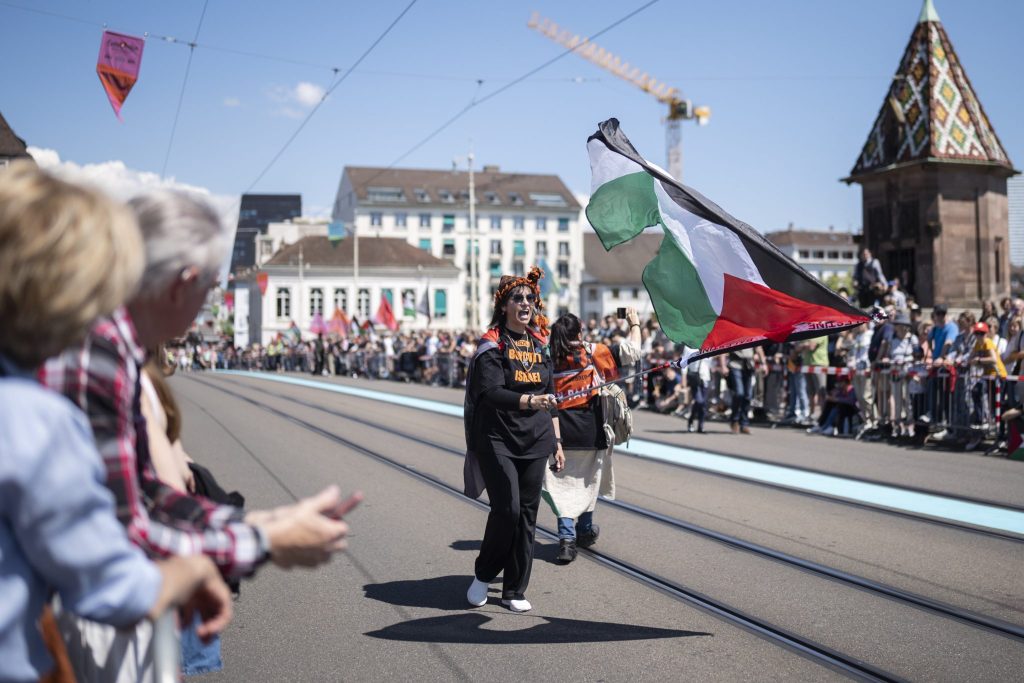 Bereits eine halbe Stunde vor dem Beginn der Parade hatten sich vor allem auf der Mittleren Brücke viele Tausend Schaulustige versammelt – darunter auch zahlreiche Palästina-Aktivistinnen und -Aktivisten mit der Palästina-Flagge. Sie verhielten sie sich zunächst friedlich und still, die omnipräsente Polizei liess sie gewähren. Auf dem Marktplatz, wo die Parade ihren Anfang nimmt, machten die Demonstrierenden mit Buhrufen und Protestslogans lautstark auf sich aufmerksam.