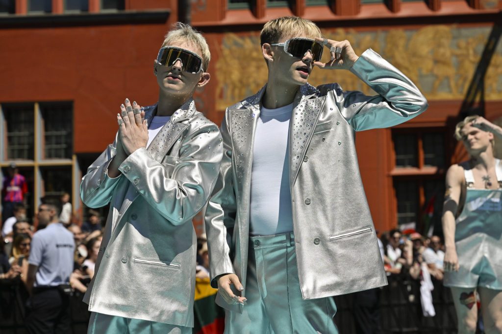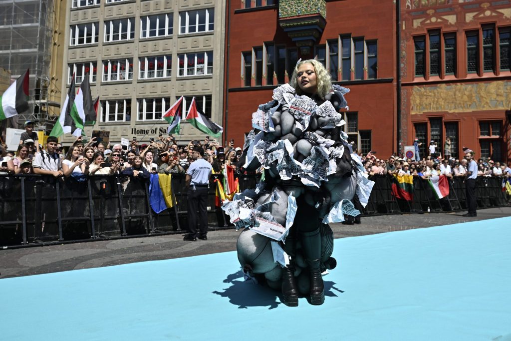 Die 37 Delegationen starteten, angeführt von Australien, beim Rathaus ihre Parade über den traditionellen Turquoise Carpet. Dieser führt auf einer rund 1,3 Kilometer langen Strecke über die Mittlere Brücke zur Eurovision Village beim Messeareal. Der Publikumsandrang war bei sonnigem Wetter gross, ebenso das Polizeiaufgebot.