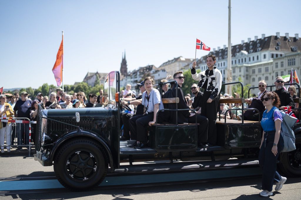 Den Weg durch die Stadt zum Eurovision Village beim Messeareal legen die ESC-Acts und ihre Entouragen am Nachmittag mit Oldtimer-Trams und -Bussen zurück. Begleitet wird der Umzug von viel Sound, welcher der Eröffnungsfeier lokales Flair verleiht, etwa mit Guggenmusiken und Basler Fasnachtscliquen.