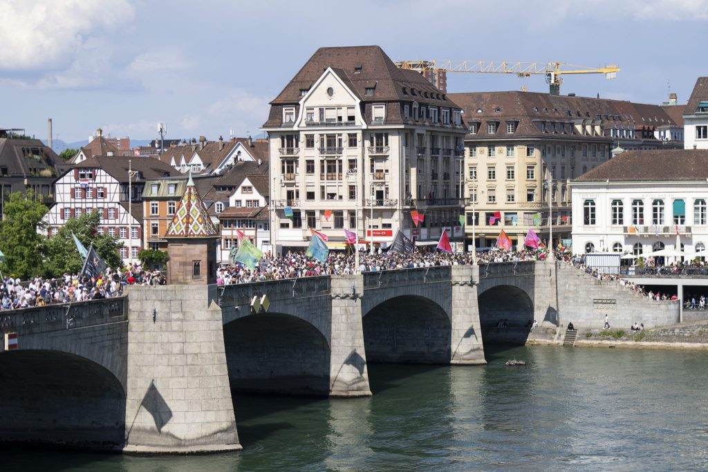 Mittlerweile sind die Fahnen schwenkenden Aktivistinnen und Aktivisten vom Kleinbasler Kopf der Mittleren Brücke verschwunden.