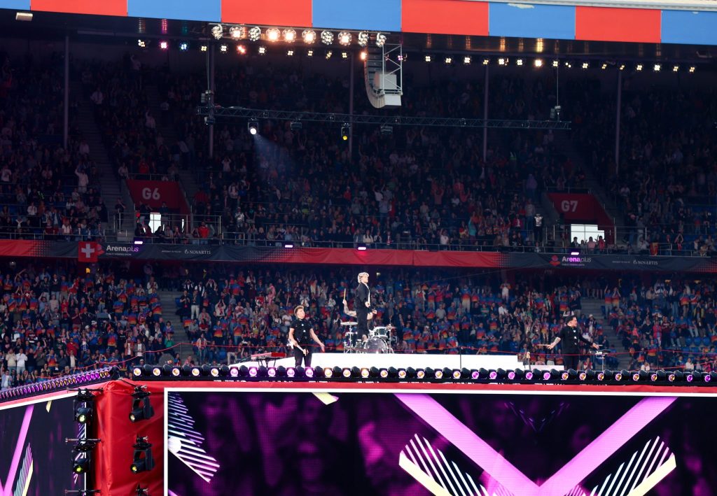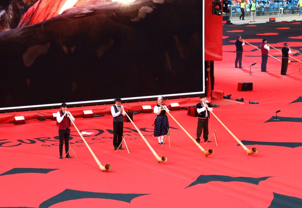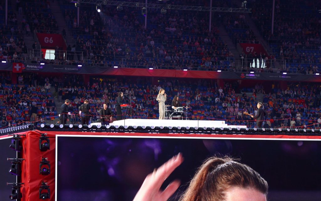 Mit dem kraftvollen Klang von sechzehn Alphörnern begann das Programm im St. Jakob-Park. Die Bläser:innen präsentierten Klassiker wie Waterloo von ABBA, das ehemalige Eurovision-Lied Satellite von Lena Meyer-Landrut sowie den aktuellen Gewinnersong The Code von Nemo. Sogar Jodler:innen stimmten mit ein und sorgten für eine schweizerische Atmosphäre. Rund 36’000 ESC-Begeisterte sassen im Publikum der Arena Plus.