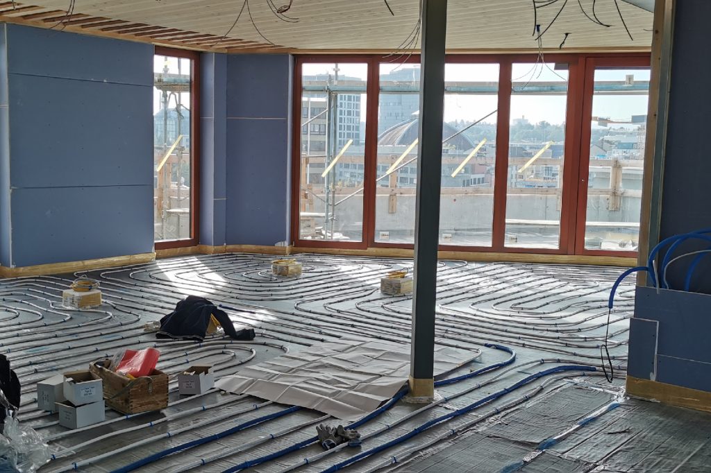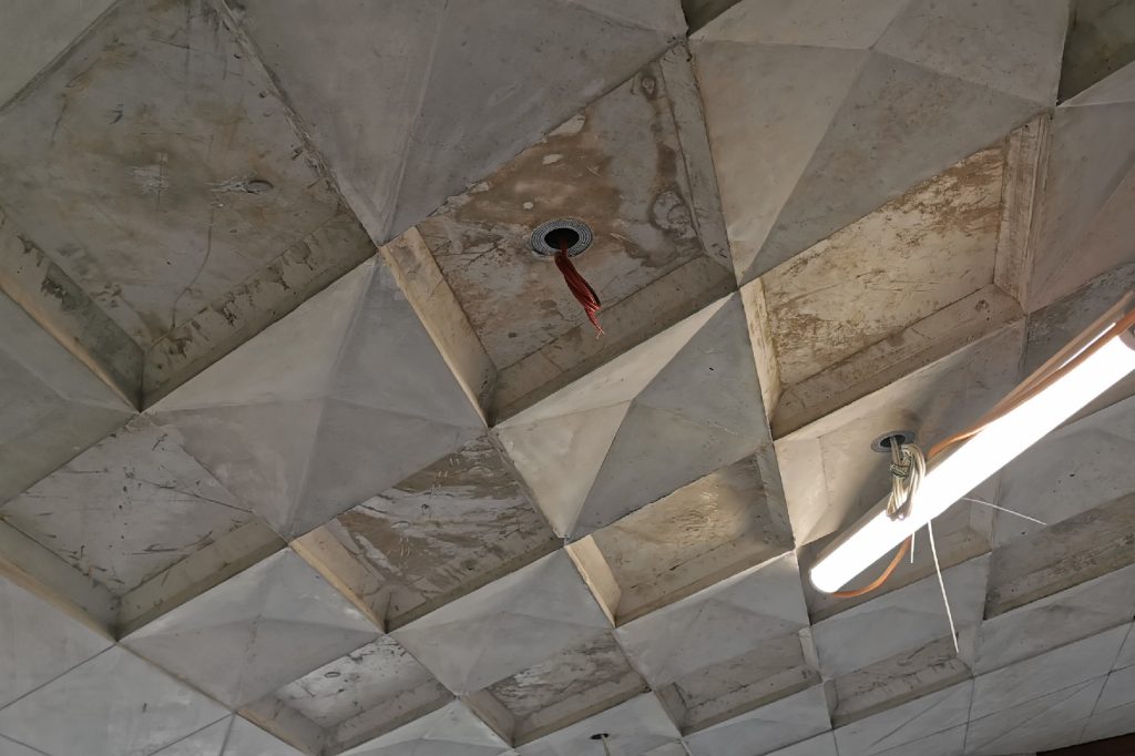 Das Besondere ist sicher, dass diese Decke nicht nur absorbiert, wie die meisten Decken, sondern, dass sie auch eine gewisse Streuung hat. Die Einlagen in der Betondecke machen die Decke nicht nur flach zum Boden, sondern sie lösen auch aus, dass unser gesprochenes Wort gestreut wird. So werden die Raumakustik und der Klang besser, als wenn sie nur absorbieren würde.
