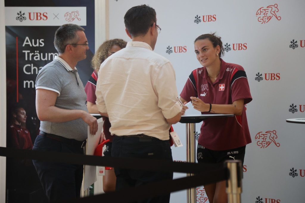 Der Countdown zur Frauen-EM läuft. Alayah Pilgrim, Riola Xhemaili und Lara Marti stimmten heute Nachmittag auf das Turnier ein.