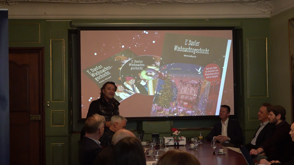 Als «Herzensangelegenheit» bezeichnete Heinz Margot das Projekt, das am Freitagmorgen den Medien präsentiert wurde. Dabei handelt es sich um «E Basler Wiehnachtsgschicht». Zusammen mit Patrick Stalder und Dani von Wattenwyl hat er den Verein EBWG (E Basler Wiehnachtsgschicht) gegründet und nun ein Hörspiel und Wimmelbuch veröffentlicht. Es sind zwei eigenständige Produkte, die aber auch kombiniert werden können, erklärte Margot.