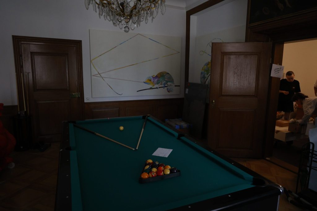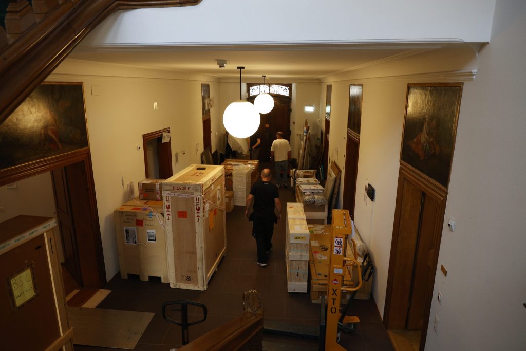 Wie auf den Bildern zu sehen ist, laufen die Vorbereitungen für die Nebenveranstaltung auf Hochtouren. Teure Kunstwerke werden angeliefert und ausgestellt, aber auch andere Dinge wie beispielsweise ein Flügel müssen ihren Platz finden. Es ist ein riesiger organisatorischer Aufwand für die Verantwortlichen.