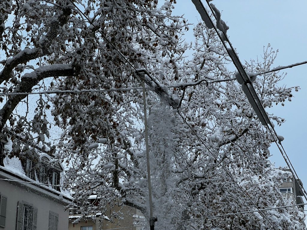 Der starke Schneefall vom Donnerstag hat in der Region Chaos ausgelöst. Die grossen Aufräumarbeiten haben bereits in der Nacht begonnen. Der Tramverkehr in der Stadt ist jedoch weiterhin grösstenteils eingestellt.