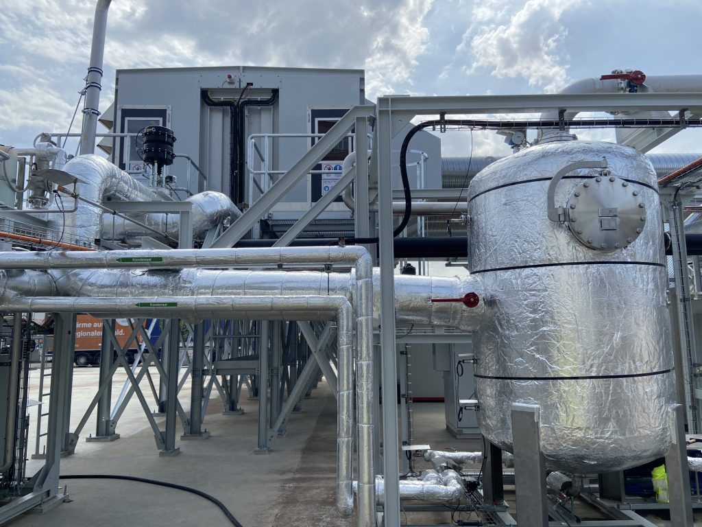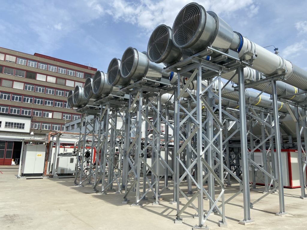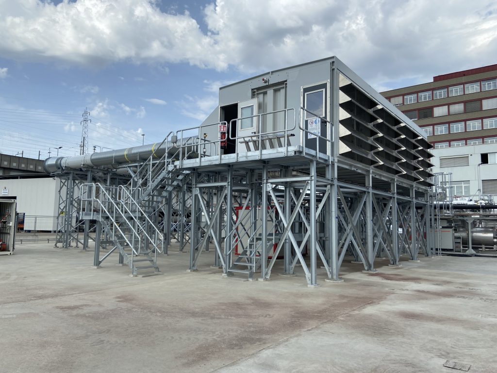 Die Anlage mit Leitungen, Röhren, Isolierfolien und Kästen erinnert an einen Heizungsraum mit elektrischer Installation im Keller eines Einfamilienhauses. Einfach um ein Vielfaches komplexer und grösser. Hier wird zwar auch geheizt, aber nicht etwa, um sich selbst warm zu halten, sondern um CO2 aus der Luft zu entfernen. Auf dem «Getec»-Industriegelände, das rund 30 Firmen beheimatet, hat Climeworks seinen Testapparat aufgebaut.