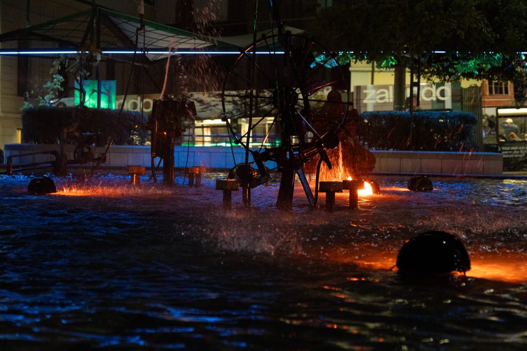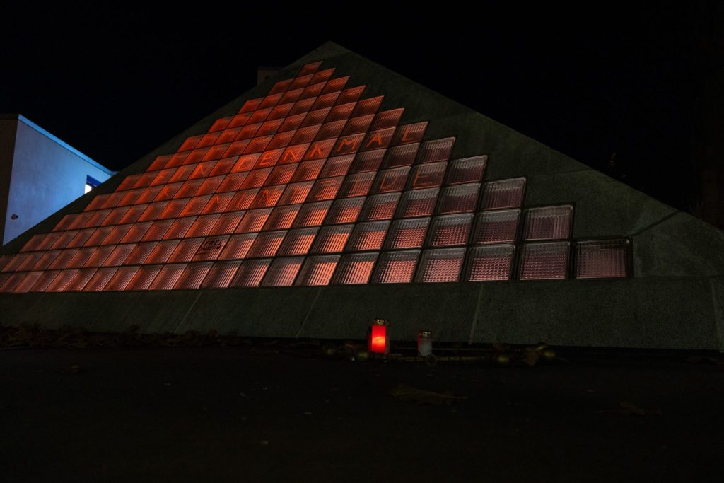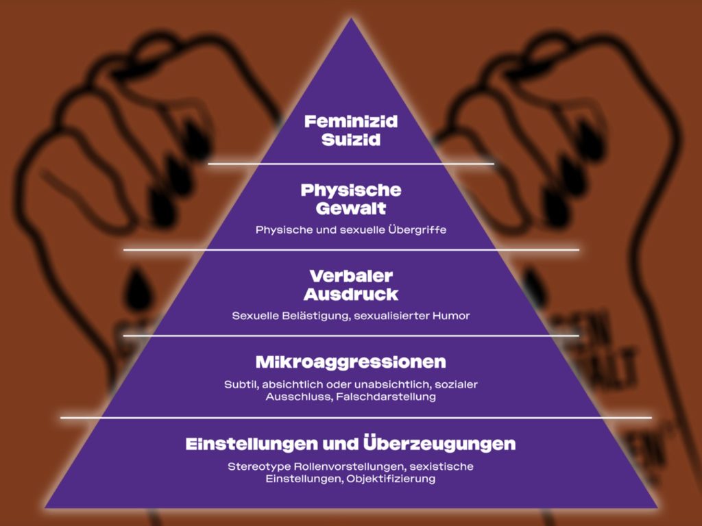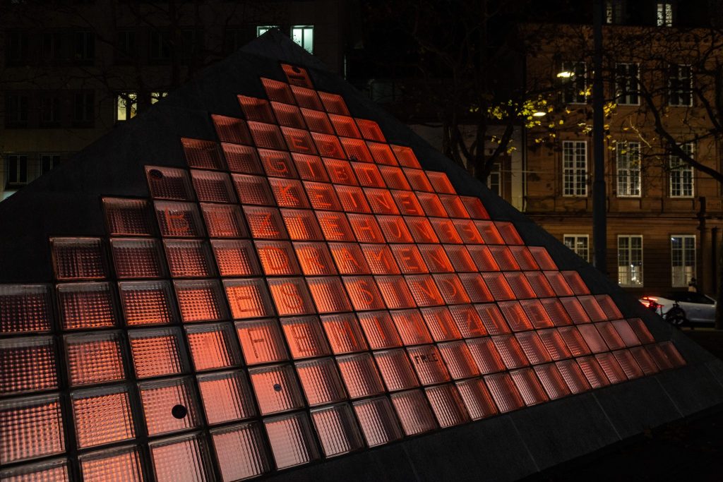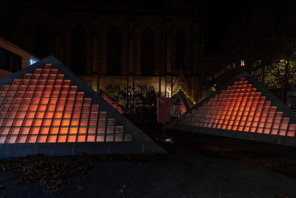 Auch die Pyramidenspitzen hinter dem Theater Basel werden orange angestrahlt. Damit soll auf Femizide (oder auch Feminizide), also die Tötung von Frauen durch ihren Partner oder Ex-Partner, aufmerksam gemacht werden. Denn dies ist nur die Spitze des Eisbergs der Gewaltpyramide, die durch strukturelle Misogynie genährt wird. Die Pyramiden werden so zu einem temporären Denkmal für alle getöteten Frauen.