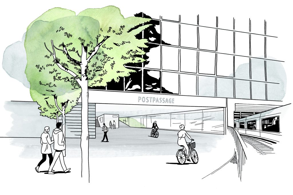 Die alte Poststelle im Postreitergebäude, auch liebevoll «Rostbalken» genannt, wird ab 2024 abgerissen. Dort sollen auf 12’000 Quadratmetern preiswerte Wohnungen entstehen. Die Passage für Fussgänger:innen und Velos soll zudem sicherer werden. Deshalb musste die Postfiliale in der Postpassage den Platz räumen. Am Montag eröffnete die neue Filiale in Bahnhofsnähe.
