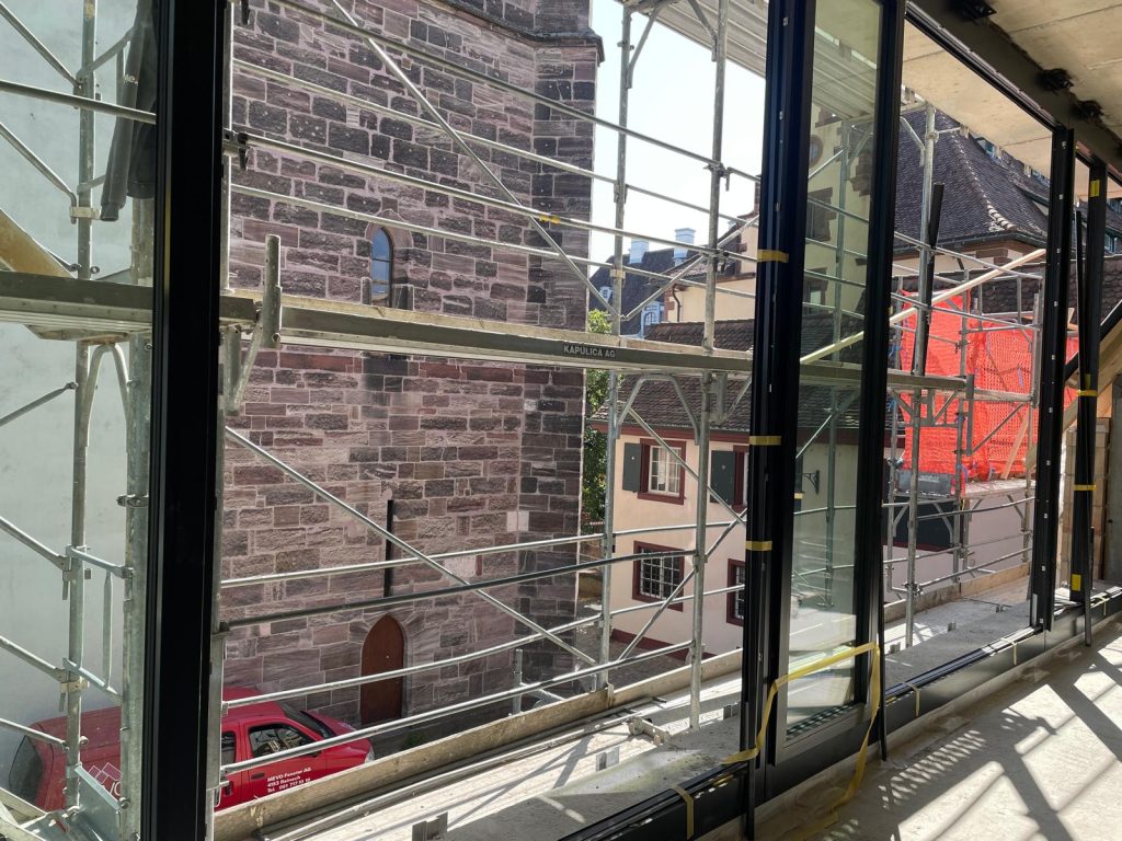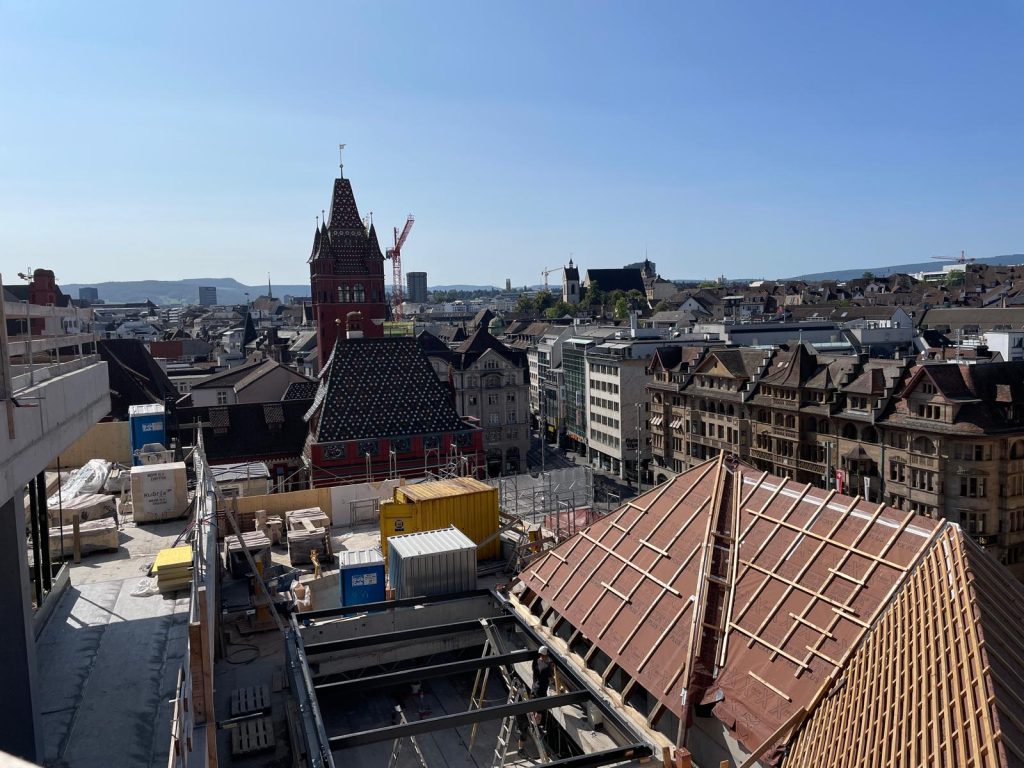 Der neue alte Globus-Bau am Marktplatz. Er nimmt also langsam Form an. Und wenn es für die Verantwortlichen so weiter geht, dann geht es nicht mehr lange und die Baslerinnen und Basler können ihren Globus wieder in alter Manier aber neuem Glanz erkennen.