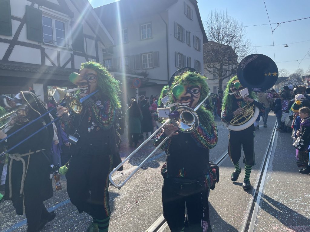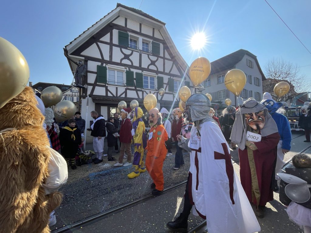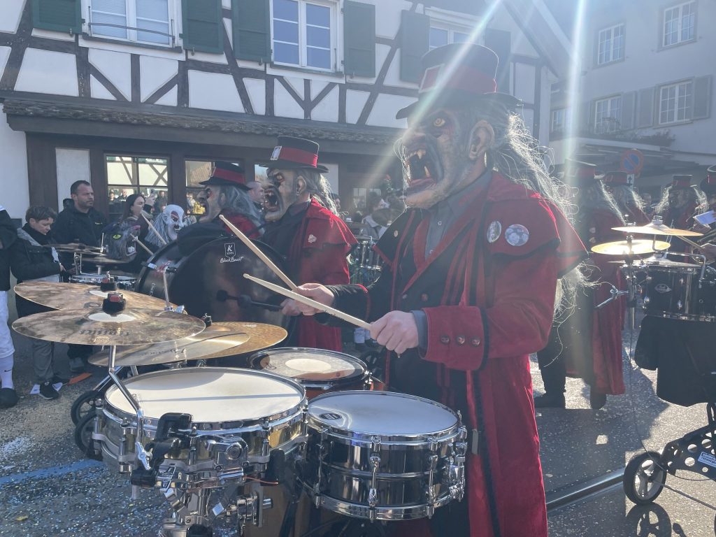 Und die Allschwiler Fasnacht hat derart ihren Reiz, dass auch Besucher:innen aus der Stadt nach Schwellheim kommen, um sich auf die Basler Fasnacht einzustimmen.