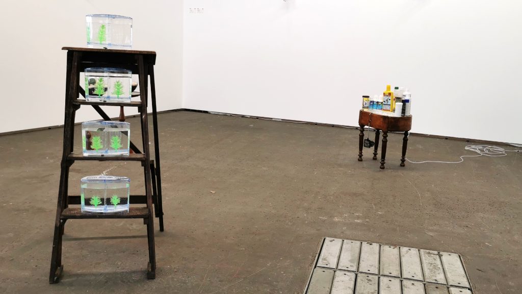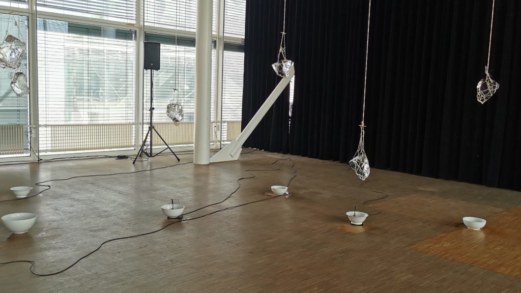 Auf verschiedenen Ebenen. Einerseits versuchen wir als Organisation, viele Massnahmen umzusetzen. Wir konnten dank Fördergelder eine Nachhaltigkeitsmanagerin ins Team holen. Sie hat Daten gesammelt aus den letzten zwei Jahren, damit wir einen Carbon-Footprint-Report machen konnten. Zudem arbeitet sie auch eng mit der «Gallery Climate Coalition» zusammen. Das ist eine Organisation aus London, die weltweit die Anlaufstation für alle aus dem Kunstbetrieb ist. Dann haben wir aber auch ganz praktische Sachen umgesetzt. Bis zu zehn Stunden Distanz legen wir beispielsweise mit dem Zug zurück. Zudem bieten wir Wasserstationen an, um mitgebrachte Trinkflaschen aufzufüllen. Schon während dem Aufbau haben wir damit Hunderte von Plastikflaschen gespart. Wir setzen auf wiederverwendbare Materialien im Messebau, so haben wir unter anderem wiederverwendbare Stoff-Flaggen für unsere Signaletik produziert. Bei den Besucher:innen und Aussteller:innen beginnen wir, Erhebungen zu machen, um herauszufinden, wie sie anreisen und wie die Kunstwerke transportiert werden. Auch inhaltlich haben wir das Thema Nachhaltigkeit integriert, indem wir die Kuratorin Sarah Johanna Theurer, eingeladen haben. Sie hat das Ausstellungsprojekt «Whistlers» kuratiert, in dem sie auf die Frage der Nachhaltigkeit eingeht. Teil der Ausstellung ist die Klanginstallation «In Curved Water» von Tomoko Sauvage, bei der es um die Transformation von Eis zu Wasser zu Sound geht.