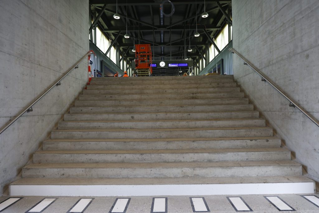 Die Passerelle sei bereits von der Feuerpolizei abgenommen worden und sei voll funktionsfähig. Allerdings sollen in den nächsten Tagen und Wochen noch kleinere Arbeiten ausgeführt werden. Dazu gehören das Einpflanzen von Bäumen und das Begrünen des Fahrradständerdachs.