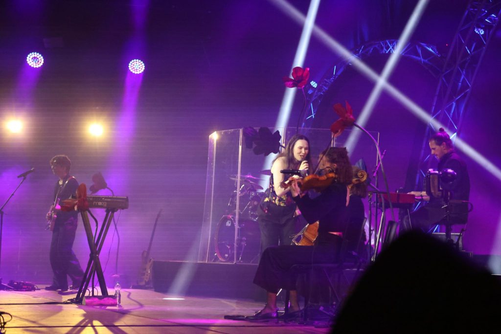 Wenn auch nicht sitzend wie beim ESC, gab es nebst all den Neuheiten auch Parallelen zum Auftritt in der Joggelihalle im Mai. Sei es das Bühnenbild, das unaufgeregt schlicht gehalten war und nur durch einzelne rote Blumen sowie Zoë Mës rotes E-Piano Farbakzente setzte. Und da wären auch die Liedtexte, die – wie bekannt – einer gewissen Melancholie nicht missen durften.