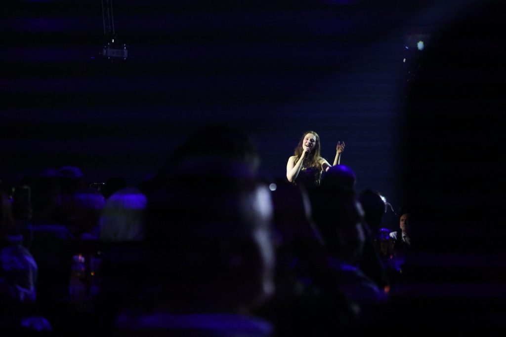 Mehr Pop, mehr Drive, mehr Tanz: Mit einer fünfköpfigen Band trat Zoë Më am Freitagabend auf. Sie bewegte sich viel, spielte mit dem Publikum, animierte zum Mitmachen – mal vom Klavier, mal vom Bühnenrand aus. Selbst ihren ESC-Hit «Voyage» sang Zoë Më aus der Mitte des Messesaals, zwischen zwei der besetzten Bistrotische.