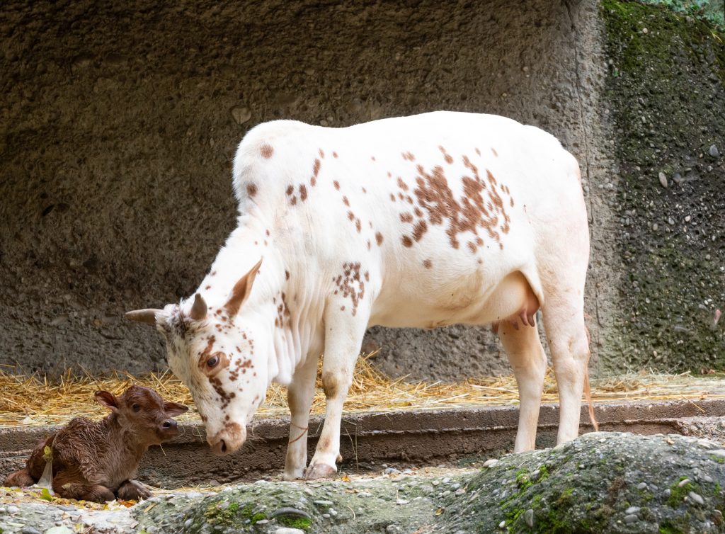 Letzten Mittwoch bemerkten die Zolli-Besucherinnen und -Besucher schnell, dass auf der Anlage der Pfauenziegen etwas anders war als gewöhnlich: Inmitten der Ziegen erblickten sie die Zebukuh Amedi – und diese verhielt sich auffällig. Als die Besucher die Tierpfleger alarmierten, konnten diese das Publikum schnell beruhigen. Amedi wurde zuvor ins Gehege der Ziegen gebracht, um dort in Ruhe und ungestört von der Gruppe ihr Junges zur Welt zu bringen. Und so kam es auch.