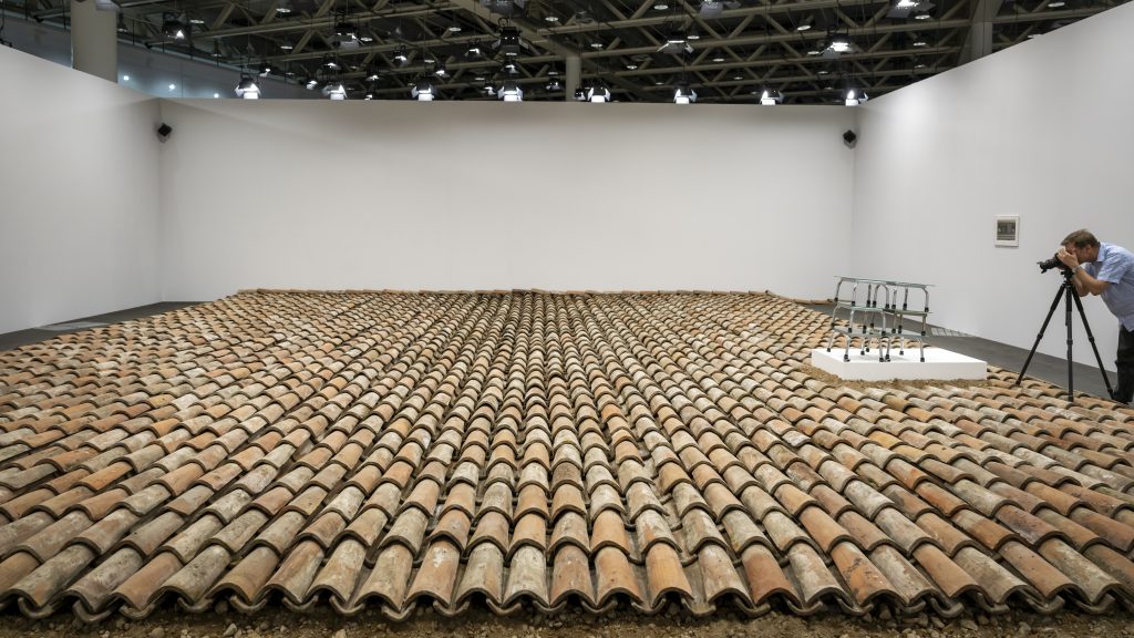 Nicht weit davon entfernt zeigt White Cube (London, Hongkong, New York, Seoul) eine grosse Fotografie von Jeff Wall, die vor Kurzem noch in der Jeff Wall-Retrospektive der Fondation Beyeler zu sehen war. Gleich daneben hängt ein Werk, das die Diskussion beleben dürfte, ob dies nun wirklich Kunst sei oder nicht: Ein aufgerollter Feuerwehrschlauch ist es, «Fire Hose» hat ihn der Künstler Theaster Gates simpel genannt.