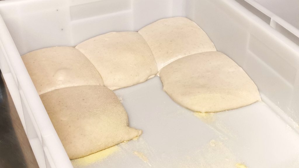 Die Hefe im Wasser auflösen, zum Mehl geben. Salz dazugeben. Alles mischen. Den Teig 30 Minuten ruhen lassen. Danach kneten, bis ein schöner, glatter Teig entsteht. Den Teig portionieren und 24 Stunden bei 4 Grad im Kühlschrank ruhen lassen.