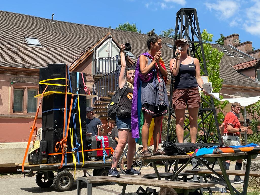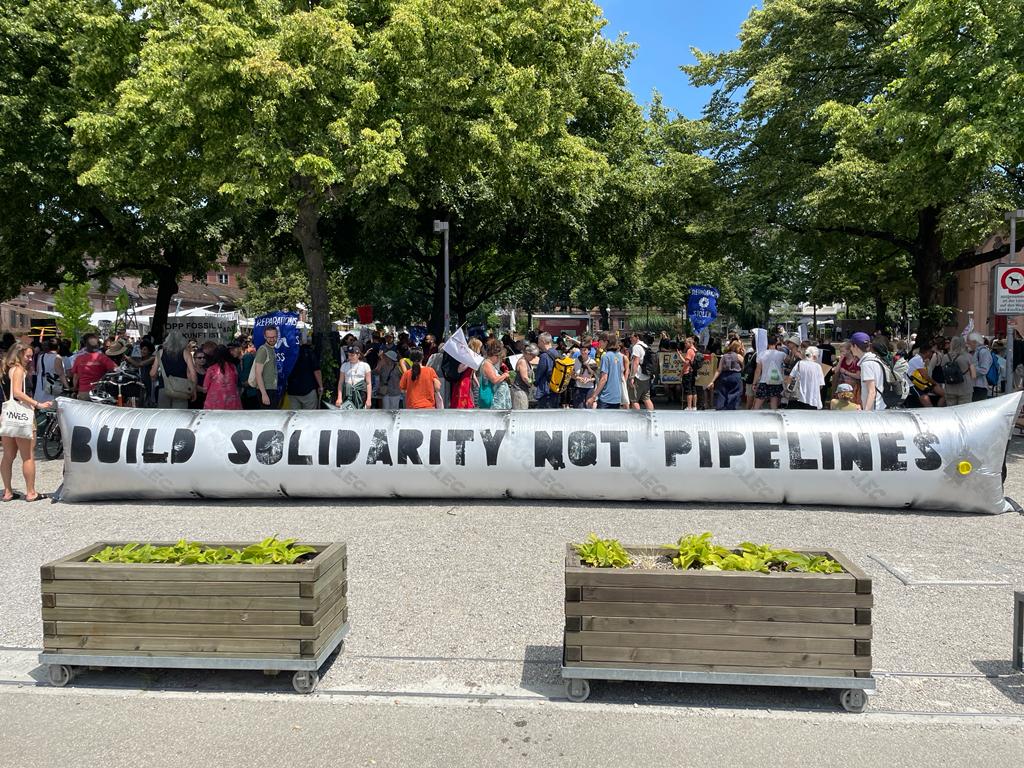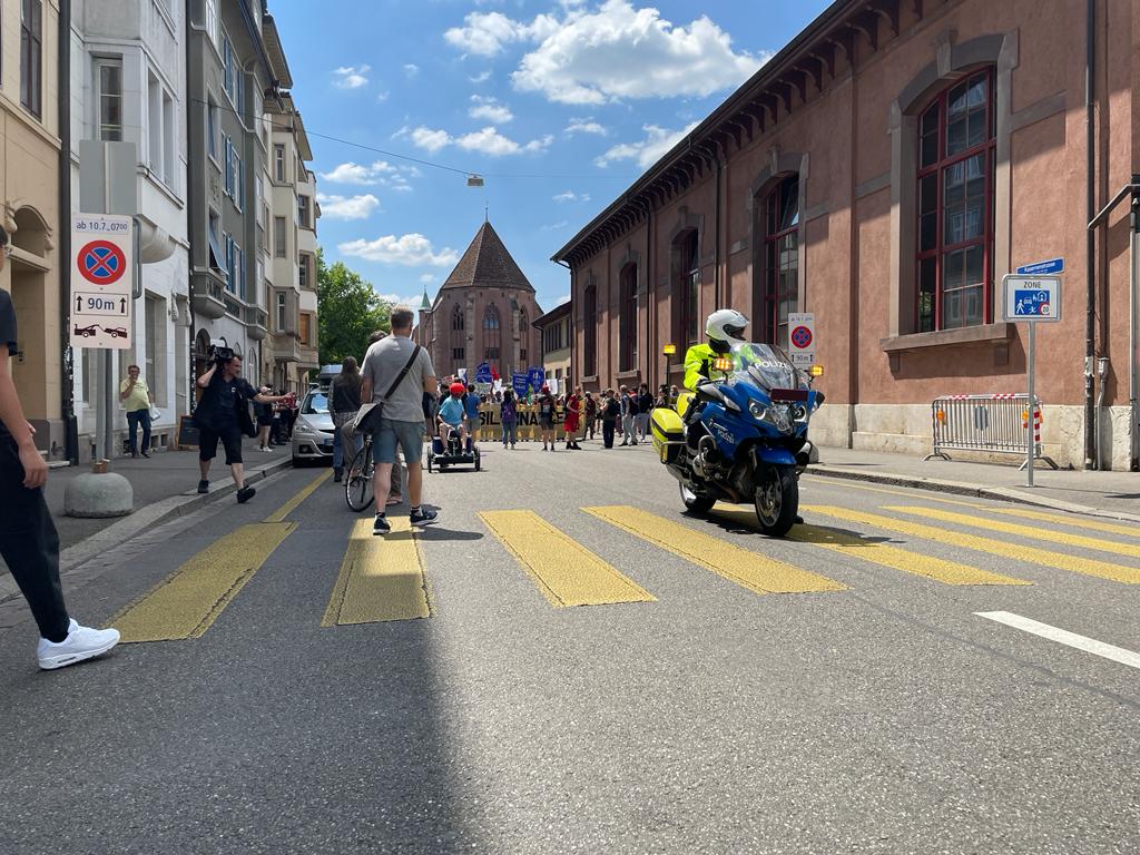 Ursprünglich wollten die Teilnehmenden bei der BIZ einen Halt einlegen. Die Polizei, die mit einem grösseren Aufgebot vor dem Gebäude war, untersagte allerdings einen Stopp.