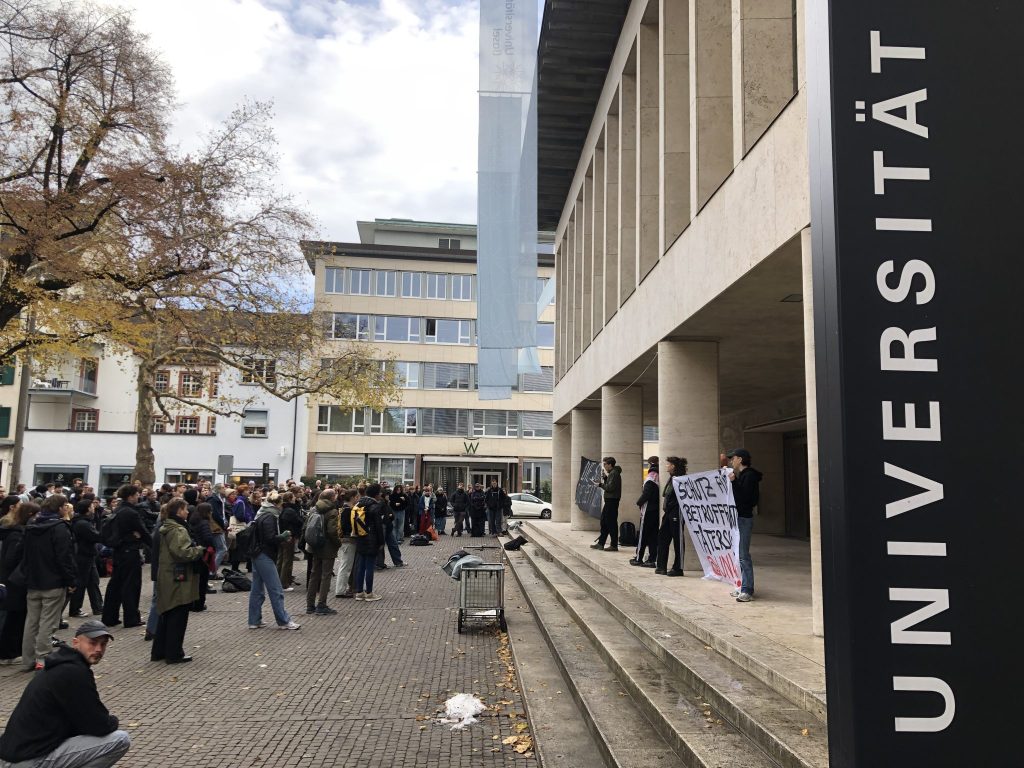 Die Universität Basel hatte im Vorfeld Kenntnis der Kundgebung, wurde jedoch von den organisierenden Personen nicht direkt informiert, sagt Mediensprecher Matthias Geering auf Anfrage von Baseljetzt.