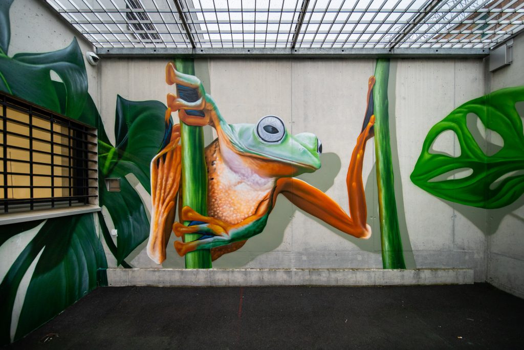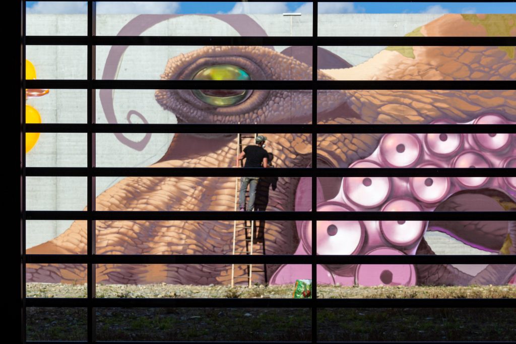 Vor einem knappen Jahr verewigte sich der Künstler auf Anfrage der Gefängnisdirektion auf den Mauern der JVA Grosshof in Luzern. Der Umgang mit dem Gefängnispersonal aber auch mit den Inhaftierten habe ihm viel gegeben: «Wir haben gemeinsam gegessen, haben geraucht, geredet, Witze gemacht; es war spannend und schön. Aber das wundert mich nicht, es sind ja alles Menschen. Es ist aber nun mal eine Welt, in die die meisten Menschen keine Einsicht haben.»