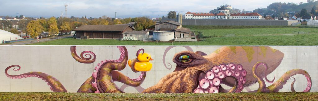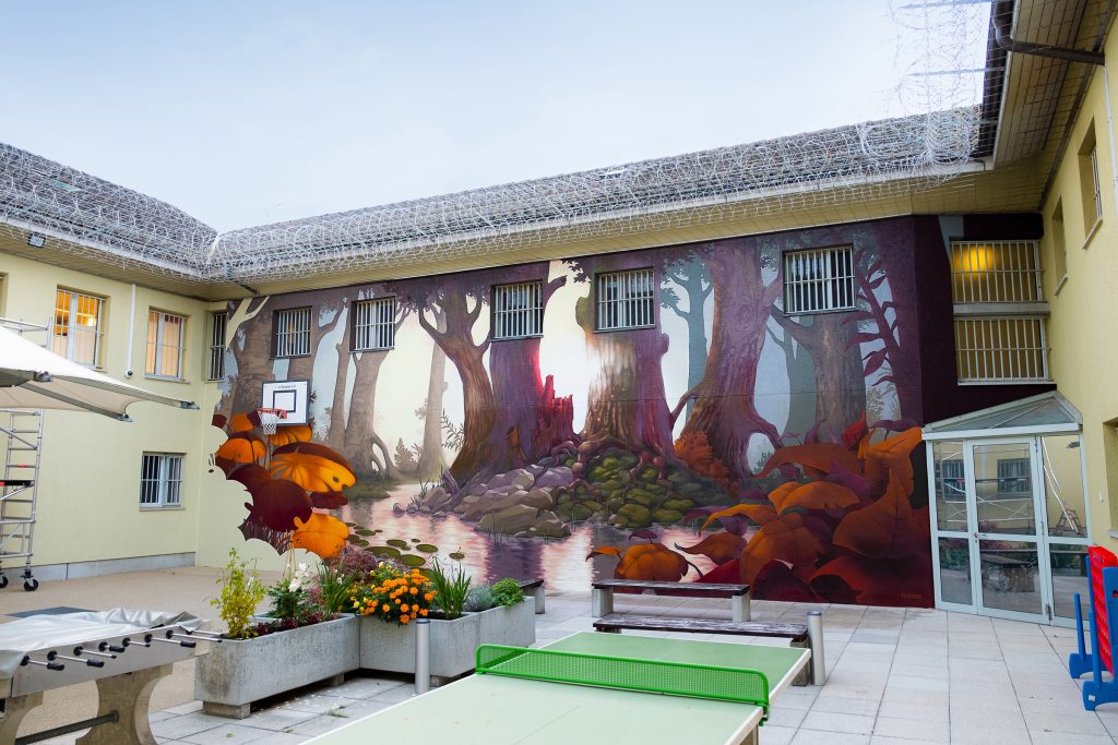 Zurück in den Kanton Aargau. Die Wandgestaltung der JVA Lenzburg entstand auf Initiative von Malik unentgeltlich. Lediglich die Materialkosten der insgesamt 16 beteiligten Urban-Artists wurden durch eine Stiftung gedeckt.
