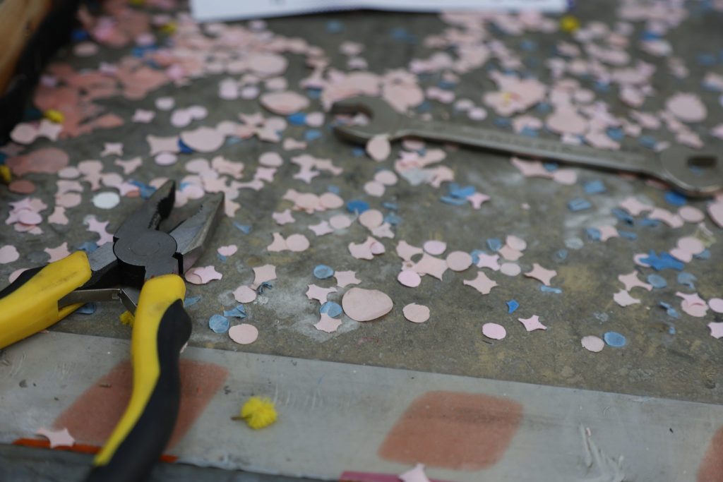 Die Laternen wurden nach dem «Ändstreich» schon an dem Lagerplatz deponiert. Für den Dupf-Club eine Garagenhalle im Bachletten-Quartier. Als Erstes werden den über 50 Kilogramm schweren Laternen die schön-bemalten Leinwände abgeschnitten. Danach kommt der mühsame Teil: Alle Tackerklammern zu entfernen, welche die Leinwände fixiert hatten.