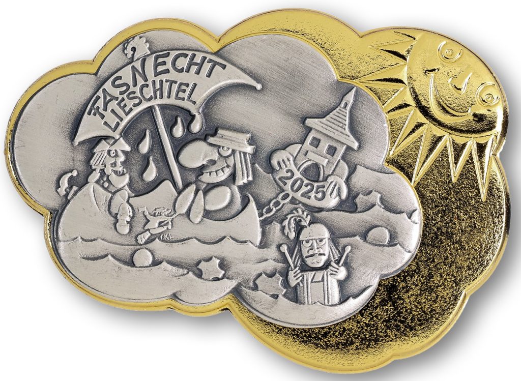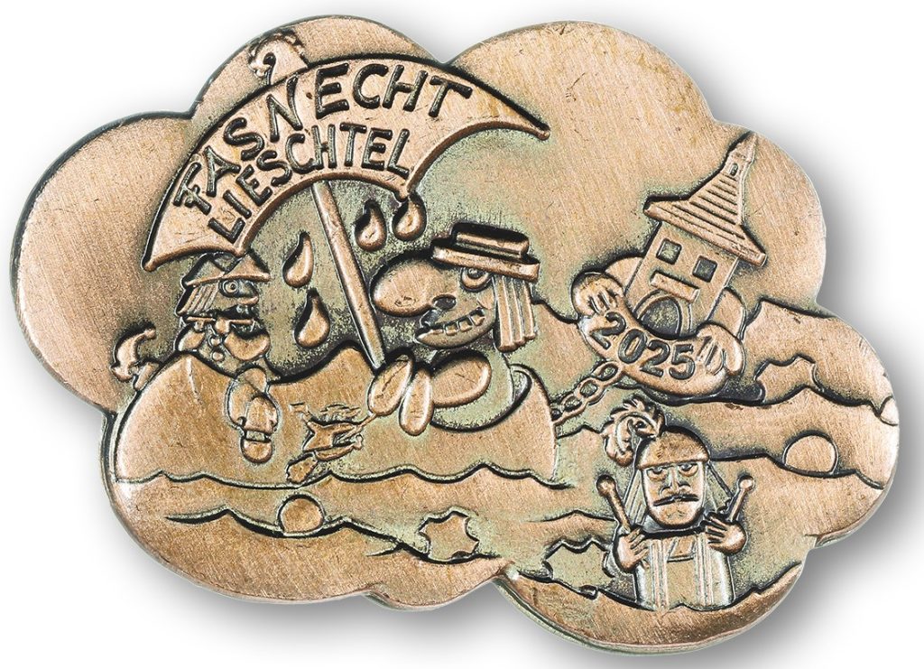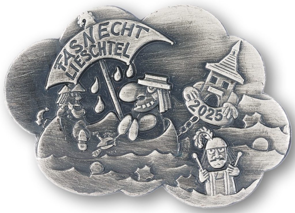 Die Plakette in Form einer Wolke spielt auf das grosse Unwetter im Juni 2024 an. Damals wurde auch ein Grossteil der Sichternstrasse zerstört. Für das Sujet «dr Bach ab!» wurde dazu auch ein passender Vers gedichtet: