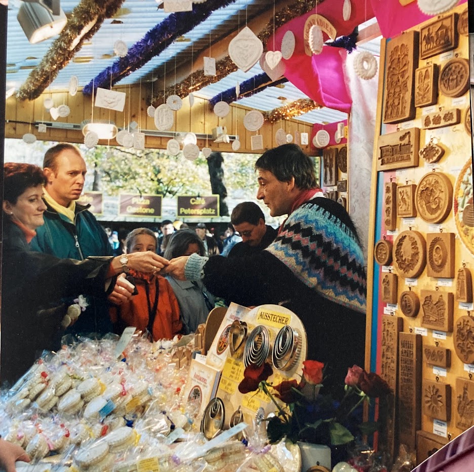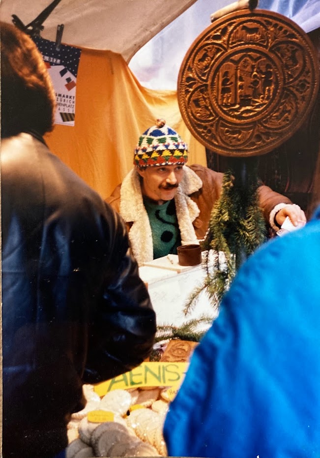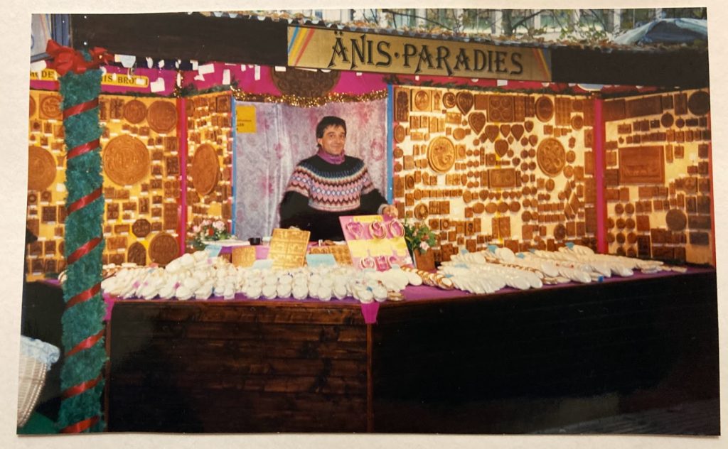 1993 hat es endlich geklappt: Linus Feller bekam zum ersten Mal einen Platz für sein «Änis-Paradies» am Basler Weihnachtsmarkt. Zuerst auf dem Barfüsserplatz, später beim Münster.
