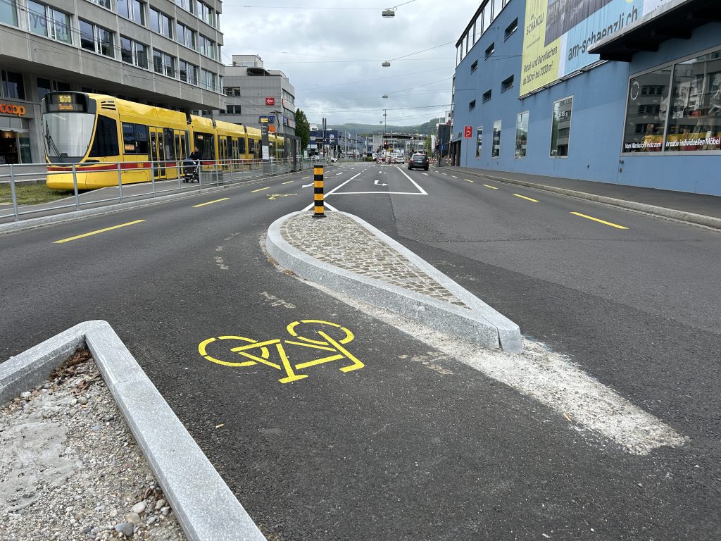 Heute hat sich der Strassenabschnitt für Velofahrende verbessert. Erste velofreundliche Massnahmen wurden vom BVD bereits umgesetzt. So zum Beispiel ein durchgehender Velostreifen und eine Velofurt, also ein Veloabschnitt, der vom Autoverkehr abgetrennt ist, vor der Einmündung in die Dornacherstrasse. Wegen der Baustelle sei die Situation aber immer noch unübersichtlich, kritisiert Pro Velo beider Basel.