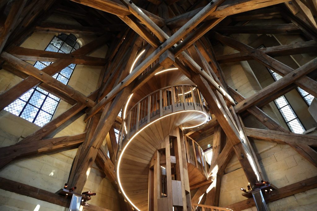 Das Herzstück der Restaurierung ist eine doppelläufige Wendeltreppe aus massiver Eiche im Südturm. Sie erstreckt sich über 21 Meter, wiegt 20 Tonnen und führt hinauf zu den berühmten Glocken «Emmanuel» und «Marie», die dadurch nun erstmals aus nächster Nähe zu sehen sind.