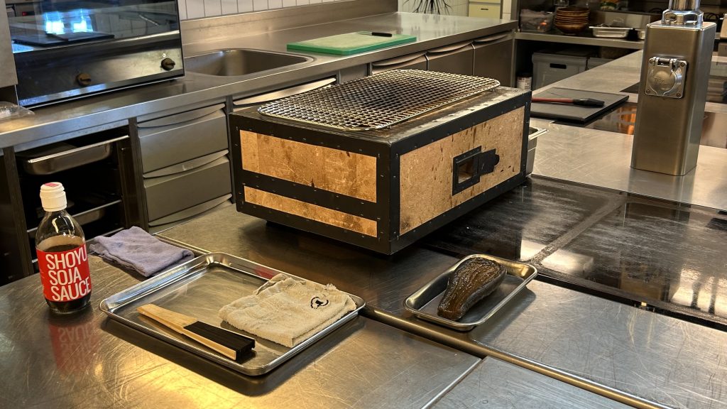 Bis die Kohle im Yaktori Grill richtig heiss ist, dauert es einen Moment. Nicht immer kommt der auf den ersten Blick unscheinbare Holzkasten zum Einsatz, denn nicht jedes Gericht ertrage die Hitze. «Einen Klöpfer würde ich darauf jetzt nicht grillieren», scherzt der Sternekoch Pascal Steffen. Im Menu seien aber sicher immer ein bis zwei Gerichte dabei, die so zubereitet werden: «Ich mag das Feuer, das Archaische, den Urinstinkt vom Akt des Essens, vom Feuer. Das das finde ich toll».