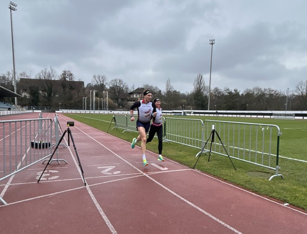 Tosender Applaus im Leichtathletikstadion St. Jakob: Sven Altermatt und Salomé Hegi-Altermatt haben es geschafft, gemeinsam haben sie den Weltrekord in der Disziplin «schnellste Meile auf drei Beinen» gebrochen.