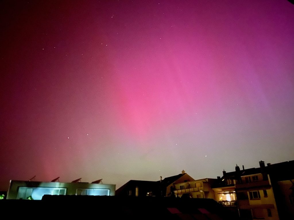 Der stärkste Sonnensturm seit über 20 Jahren hat in der Schweiz für sichtbare Polarlichter am Nachthimmel gesorgt. Das farbige Spektakel war von blossem Auge ausnahmsweise sogar vom Flachland aus sichtbar.