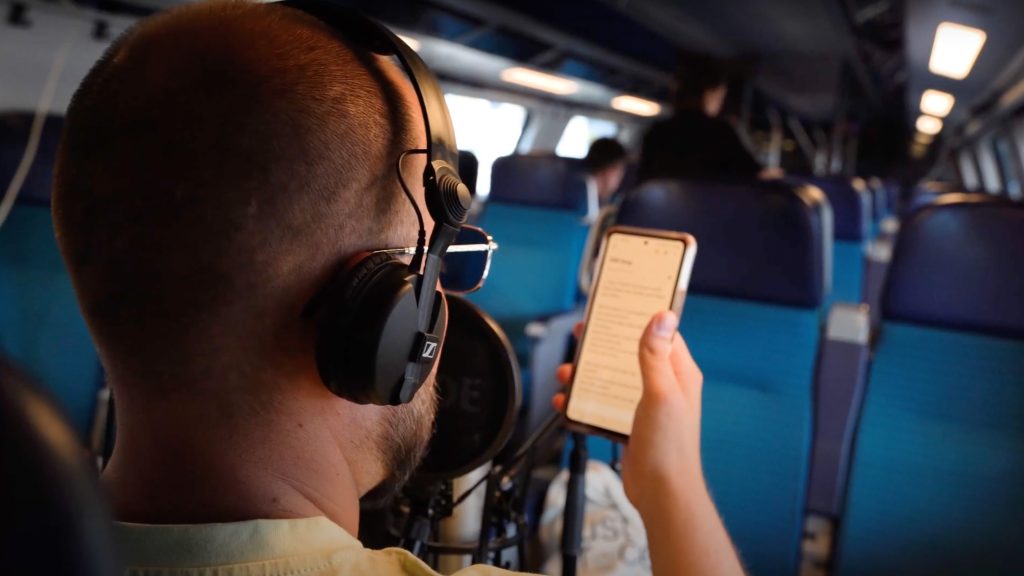 «Das Modul sah vor, dass wir etwas organisieren. Wie oder was, stand uns frei», so Alicia Göldi, Studentin und Mitwirkende am Projekt. Was die Studierenden vereine: Sie pendeln viel. Schliesslich kam man auf die Idee, aus einer Alltagserfahrung etwas aussergewöhnliches zu machen: «Wir wollten herausfinden, ob wir den Zug auch zum Tonstudio umfunktionieren können.»