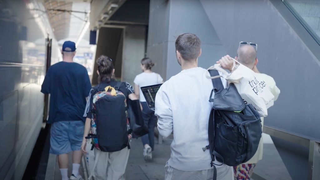 In den ersten vier Stunden verarbeiteten die Studierenden die Gesprächsfetzen der anderen Zugreisenden, um eine Grundlage für die Lyrics zu schaffen. Ausserdem wurden verschiedene Geräusche als Bausteine für den Beat aufgenommen.