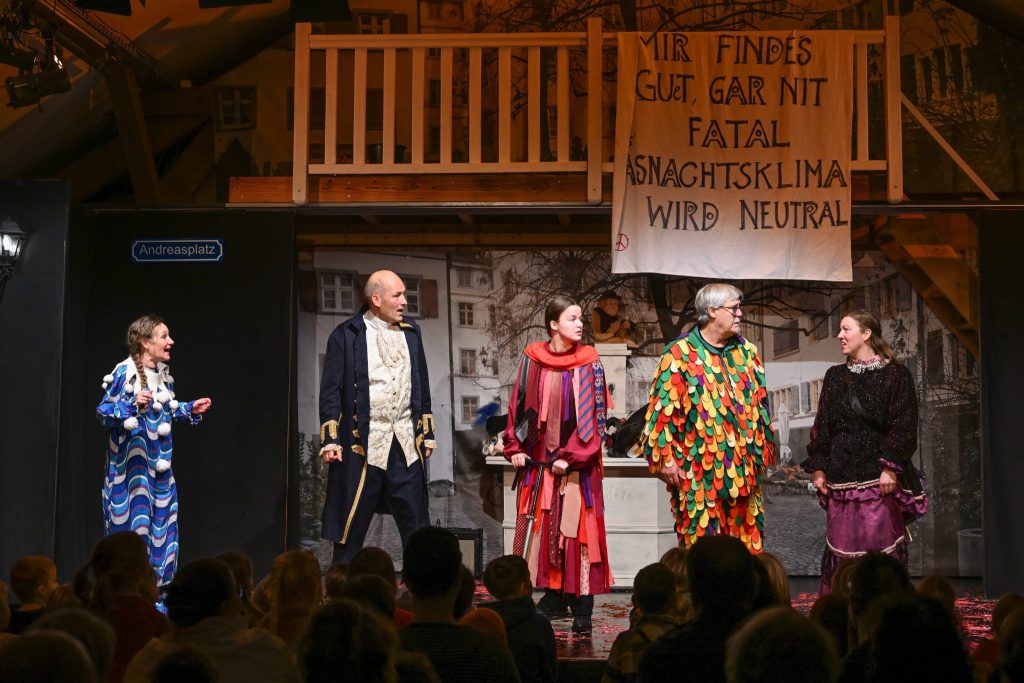 Zudem kommt es bei der Jubiläumsausgabe zu einer Premiere, so wird zum ersten Mal das Symbol des Theaters, der Arlecchino, die Bühne betreten. Muskalisch begleitet wird die Produktion von den Bändeli-Ruesser, der Basler Piccolo-Akademie und den Amerbach-Pfyffer.