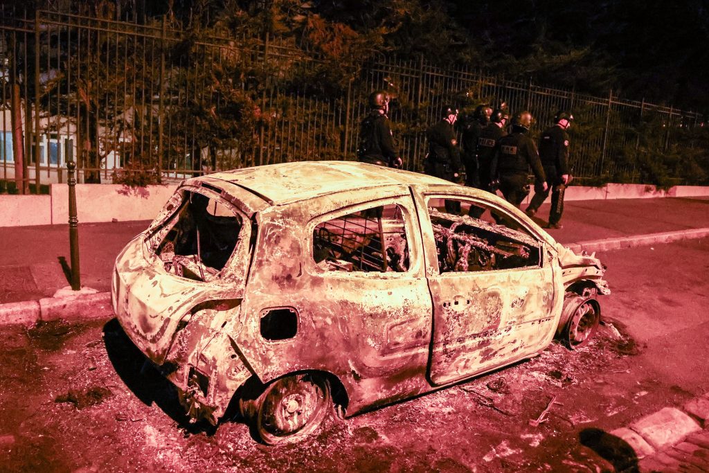 Frankreichs Innenminister Gérald Darmanin sagte am frühen Samstagmorgen, dass die Gewalt in dieser Nacht von «geringerer Intensität» gewesen sei als zuvor. Er setzte landesweit 45’000 Polizisten in der Nacht ein, darunter auch Spezialkräfte. Doch trotz der massiven Polzeipräsenz mit gepanzerten Fahrzeugen und Hubschraubern kam es vielerorts zu Bränden und Plünderungen. 1350 Autos sind dem Innenministerium zufolge ausgebrannt. Insgesamt habe es 2560 Brandherde auf öffentlichen Strassen gegeben. Ausserdem seien 31 Polizeiwachen angegriffen worden. In der vorherigen Nacht waren den Behörden zufolge noch 1900 Autos ausgebrannt.