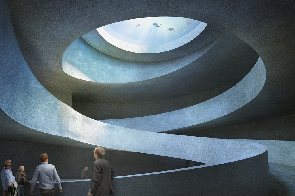 15 Architekturbüros qualifizierten sich 2012 in einem international durchgeführten Wettbewerb, das Projekt «Seacliff» der Zürcher Boltshauser Architekten konnte schliesslich die Jury überzeugen. Doch nicht nur die Jury war überzeugt von diesem Stampflehmbau, der ein durchdachtes energetisches Konzept in sich vereinigte, auch im Grossen Rat konnte das riesige Aquarium die Mehrheit überzeugen. Die Baukosten von 100 Millionen Franken hätte der Zoo Basel mit privaten Spenden finanzieren wollen.