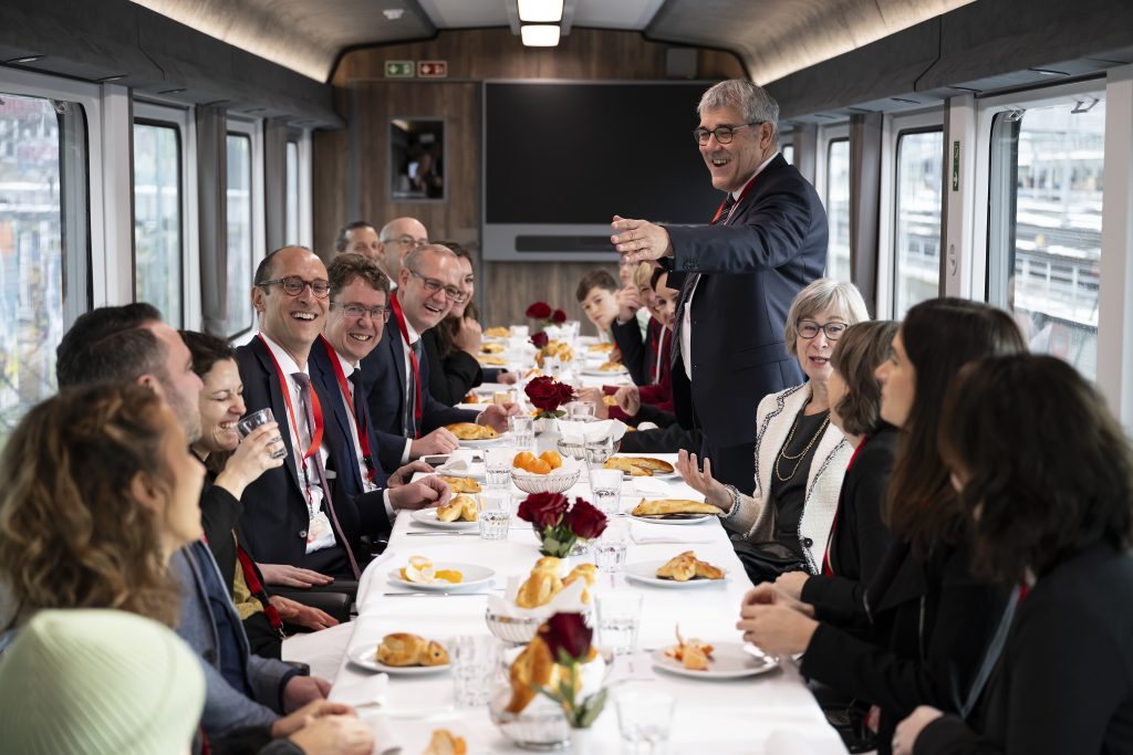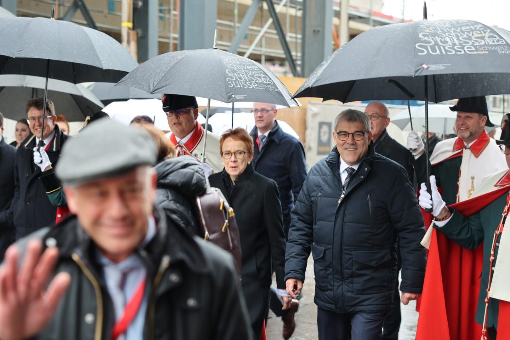 Der Zug war pünktlich, die Laune gut. Dass der Tross aus Bern sozusagen auf der Grossbaustelle ankam, hat die wenigsten gestört.