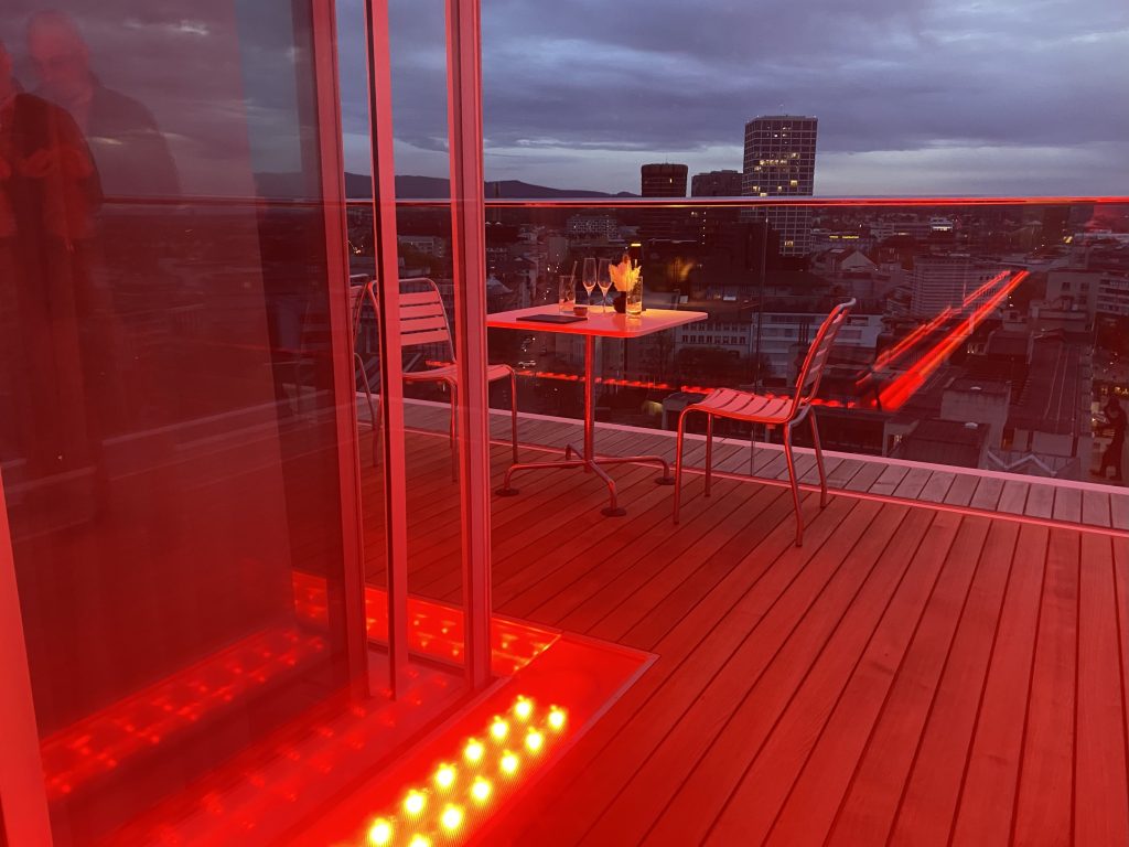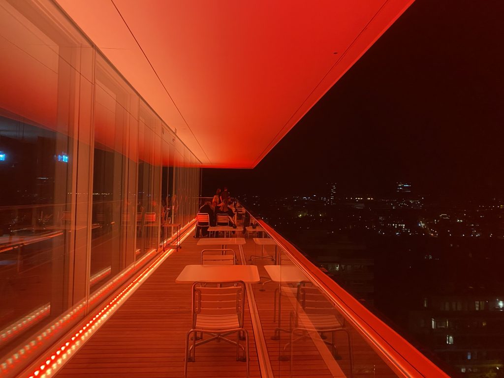 Aber wie kommt der «Ruhepol» bei den Gästen an? «Die Lichtinstallation könnte dezenter und gedimmter sein», sagt ein junger Mann, «dann wäre es kuscheliger. Es ist mir noch zu aggressiv, zu grell.» Ansonsten fände er die Bar einen «Eyecatcher». Auch ein anderer sagt, es sei ein «place to be». Vor allem weil es in Basel sonst nicht so viele Bars in dieser Höhe gebe. «Nur die Preise muss man noch etwas anpassen», schmunzelt er. Das Licht fände er aber angenehm und nicht störend.