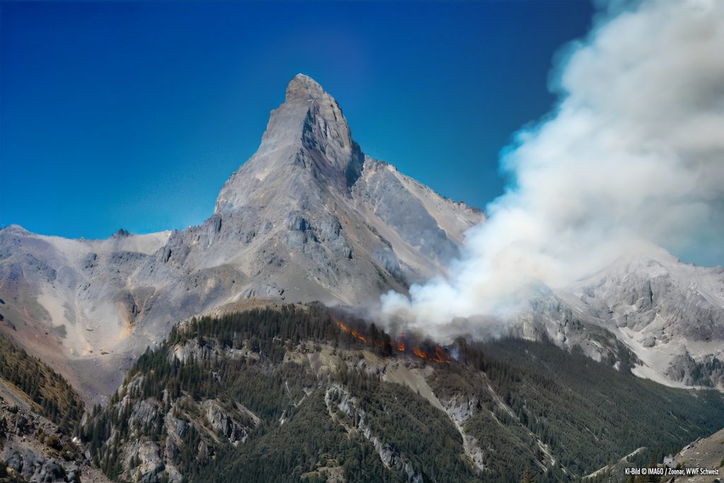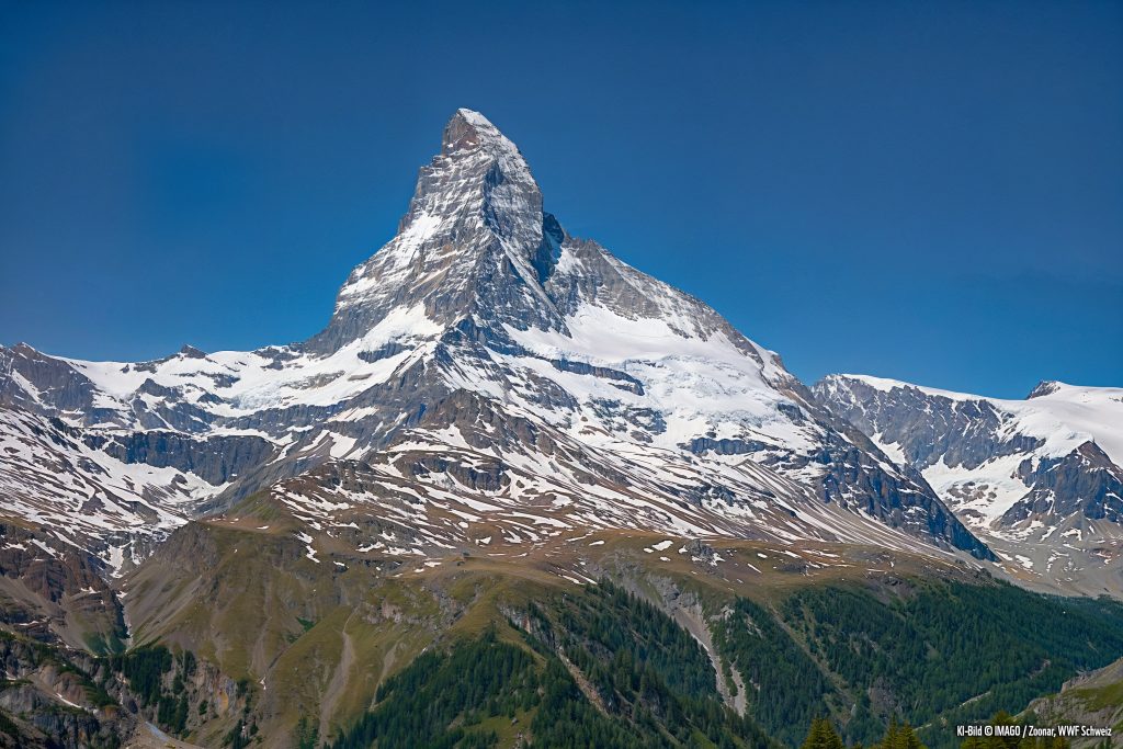 Mittels Künstlicher Intelligenz wurden auf Basis wissenschaftlicher Daten Zukunftsbilder des Aletsch-Gletschers, des Matterhorns, der Weinberge des Lavaux und des Rheinfalls erstellt. «Nur wenn wir möglichst viele umweltfreundliche Politiker:innen ins Parlament wählen, können wir rasch und entschlossen handeln, um unsere Umwelt und damit uns zu schützen», sagt WWF-Kampagnenleiter Adrian Mahlstein.